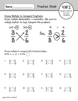 4.Nf.2 Worksheets. Compare two fractions with different numerators and different denominators, e.g., by creating common denominators or numerators, or by comparing. Apply and extend previous understandings of multiplication to multiply a fraction by a whole number. these worksheets can help.