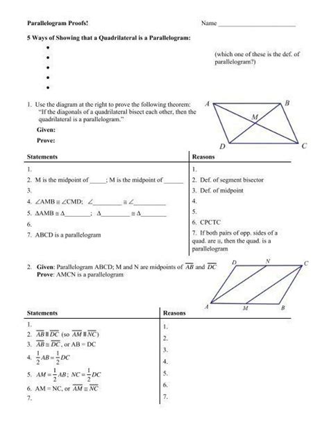 Web 8.3 Worksheet Proving Parallelograms 7Ft.