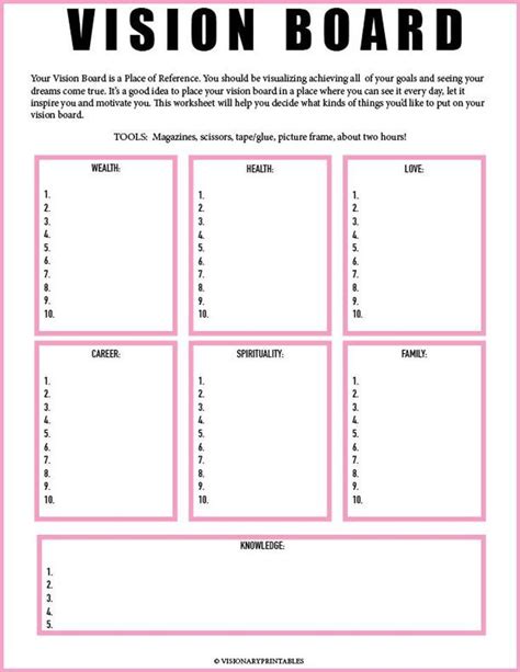 Vision Board Worksheet to organize your goals and dreams! Vision from www.pinterest.com.mx