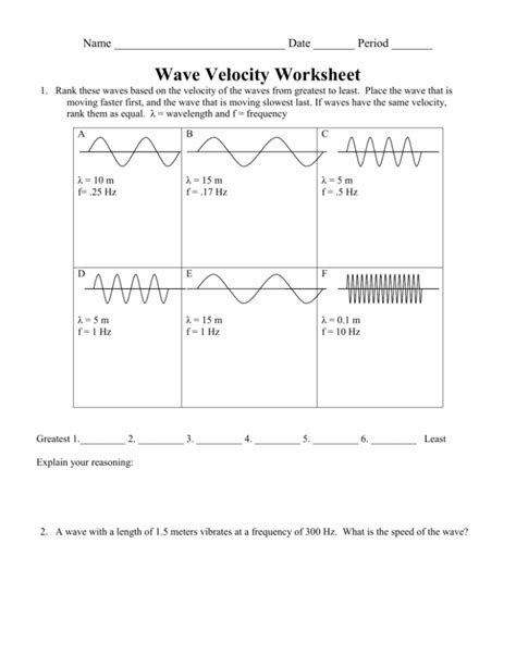 Then complete the calculation problems at the bottom of the page. Of a water wave if its frequency is 5 hz and its velocity is 35 m/s? Web changing the frequency or amplitude of the waves will not change the wave speed, since those are not changes to the properties of the medium. but the equation is for velocity.