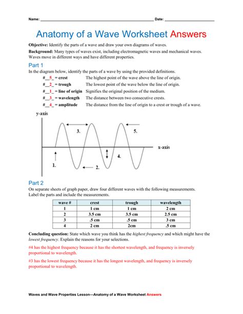 Web Anatomy Of A Wave Worksheet Answers Objective: