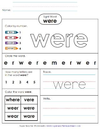 Were Sight Word Worksheet. Students will practice finding and recognizing the. The students will read, color, write, find, and use the.