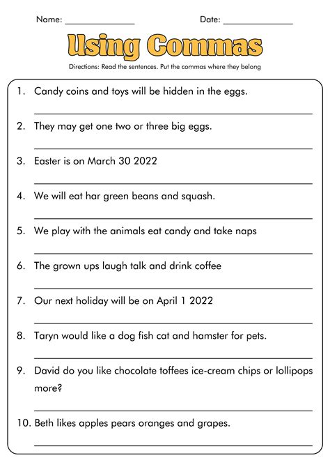 Worksheet 1St Grade Comma Practice. Web in this practice worksheet, children develop their punctuation skills as they correct five sentences and rewrite five more. A few of the sentences do not need commas.